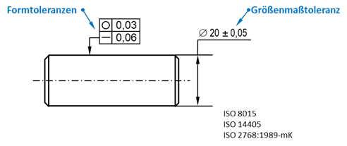 Zweipunktgrößenmaß) werden durch die GPS-Normen festgelegt und sind somit nicht unmittelbar in einer Zeichnung sichtbar. Durch die Verwendung von Modifikationssymbolen (Beispiele: { Hüllbedingung,